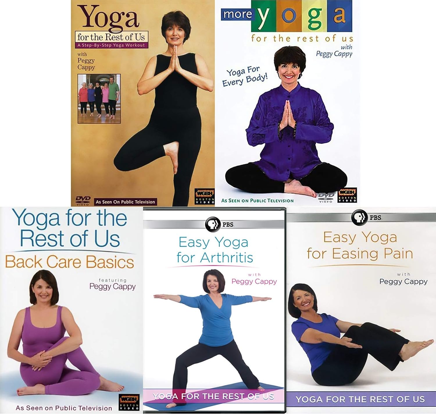 Let peggy ease you into the world of yoga, regardless of your age or ability. Just as peggy cappy has modified yoga poses in her earlier videos yoga for the rest of us and more peggy shows you the right exercises and yoga poses to protect your back and improve your posture. Join yoga instructor peggy cappy as she provide a path to relief for the millions of individuals who suffer from varying levels of muscular or joint pain. Peggy cappy, creator of the yoga for the rest of us series, now offers a heart healthy approach to yoga in her signature gentle style that every body can do. The average age of the group is 78 and.